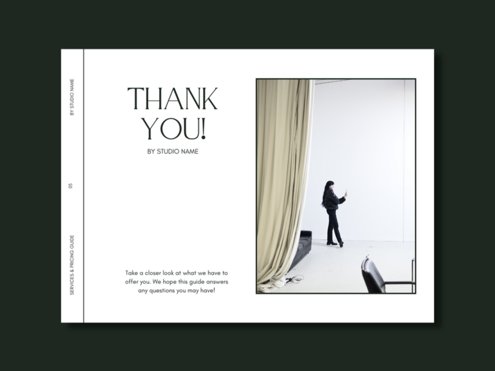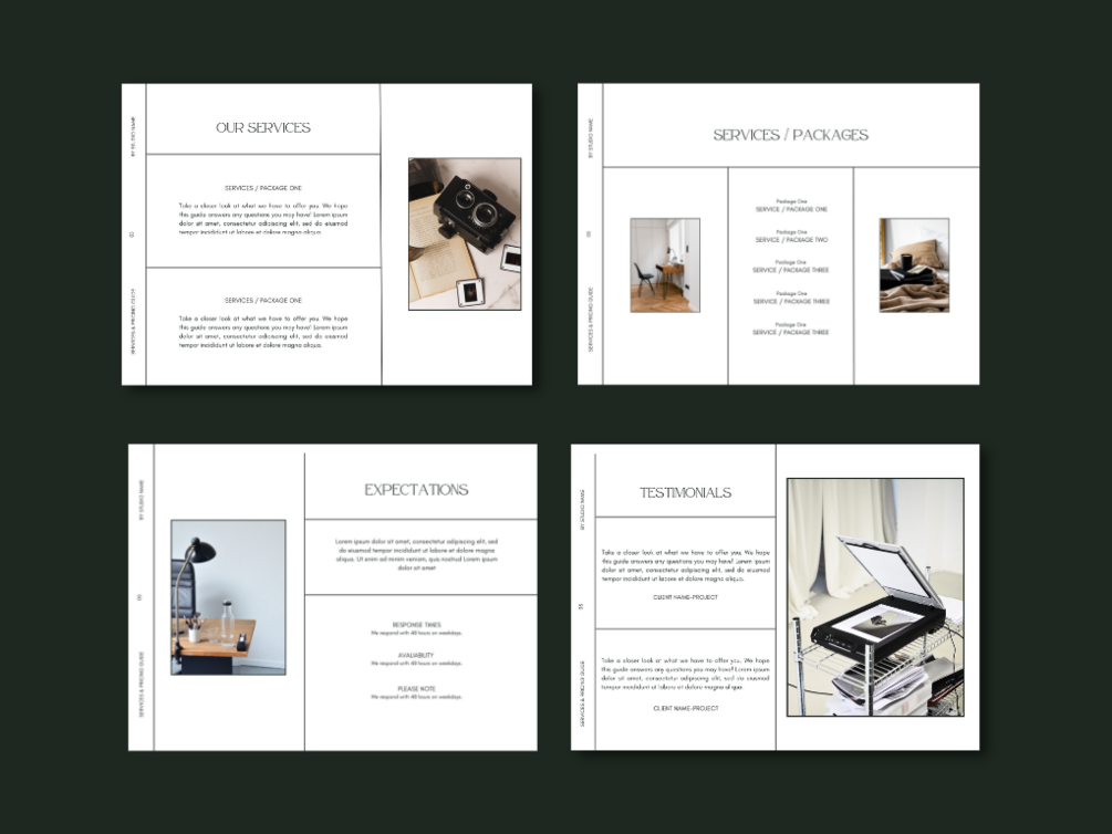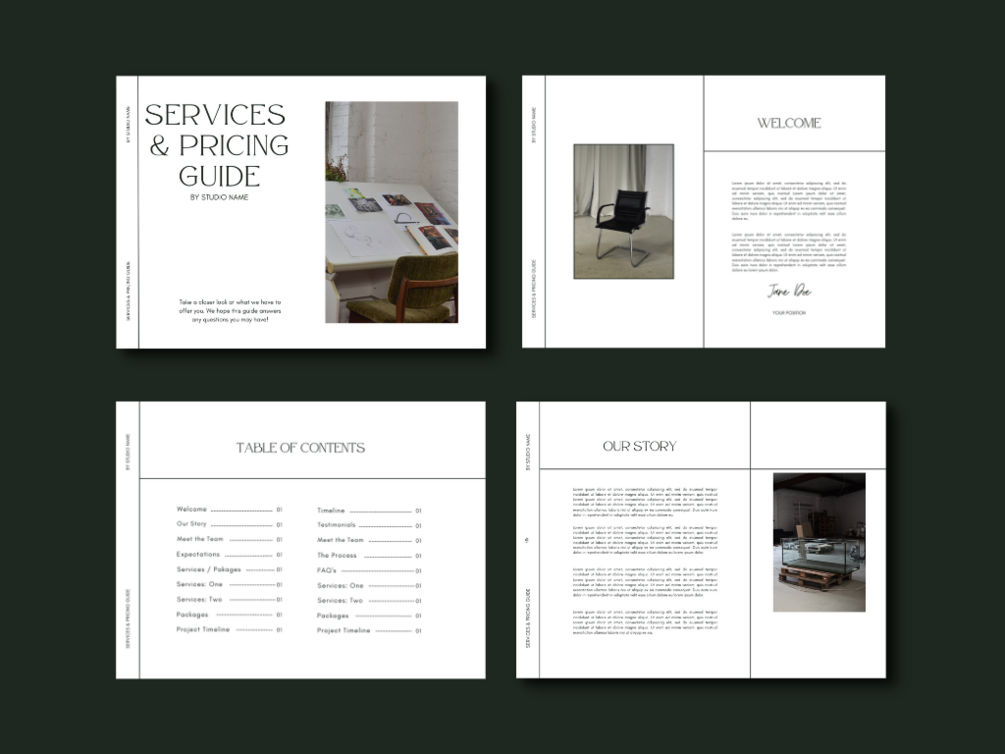 This template is perfect for graphic designers, photographers, lifestyle & beauty bloggers, and so much more! Every business deserves a compelling Services & Pricing Guide.